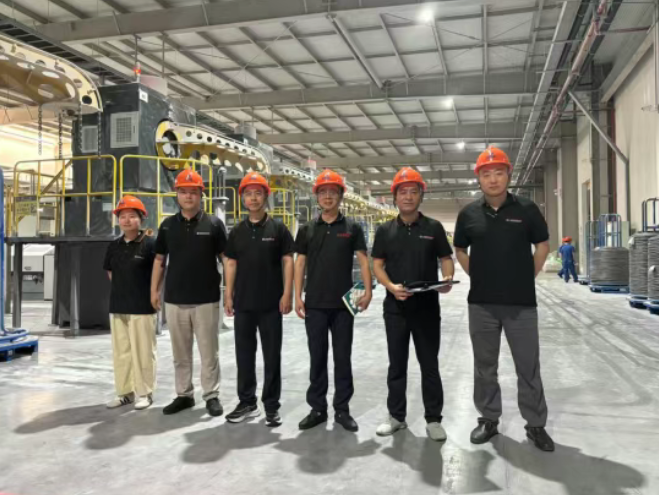 在實地調(diào)研中,東昊考察團深入中天新材料生產(chǎn)一線,重點考察了鋼絲拉拔、熱處理、鍍層工藝等核心環(huán)節(jié)。技術(shù)團隊針對鋼絲直徑的毫米級公差控制、鍍層厚度的均勻性及附著力等關(guān)鍵指標(biāo),與中天新材料研發(fā)人員展開深度技術(shù)研討。生產(chǎn)負(fù)責(zé)人指出:“胎圈鋼絲的制造是‘毫米級精度’與‘微米級工藝’的雙重考驗,從原材料篩選到成品檢測,每一道工序都需以航空級標(biāo)準(zhǔn)執(zhí)行。”此外,考察團還重點評估了中天新材料的智能化生產(chǎn)線與全流程質(zhì)量追溯系統(tǒng),對其在智能制造領(lǐng)域的投入表示高度認(rèn)可。