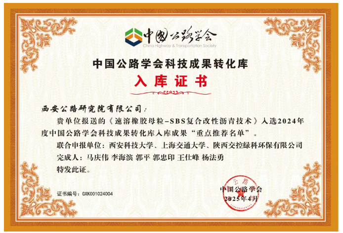 西安公路研究院“速溶橡膠-SBS復(fù)合技術(shù)”獲行業(yè)重磅推薦