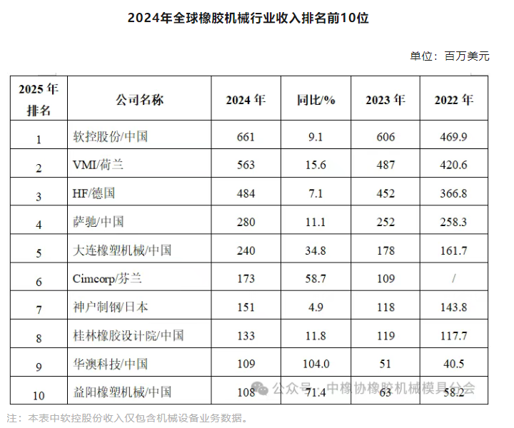 軟控股份三連冠!2024全球橡膠機(jī)械收入榜首再穩(wěn)固