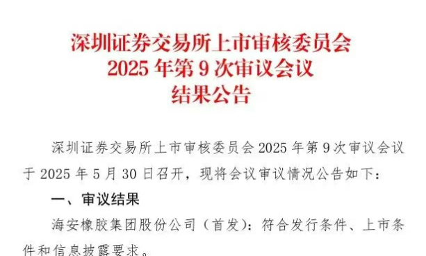 【炭黑產(chǎn)業(yè)網(wǎng)】6月3日消息,近日,深圳證券交易所上市審核委員會公布了2025年第9次審議會議的最終結果,海安橡膠集團股份公司成功通過首次公開發(fā)行股票并上市的審核,這一消息迅速在資本市場引起廣泛關注。此次審核通過,不僅為海安橡膠打開了通往資本市場的大門,也預示著其未來發(fā)展將迎來新的篇章。