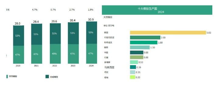 2024年全球橡膠生產(chǎn)量3090萬(wàn)噸