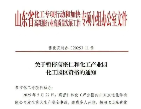 山東高密仁和化工產(chǎn)業(yè)園因事故遭暫停資格