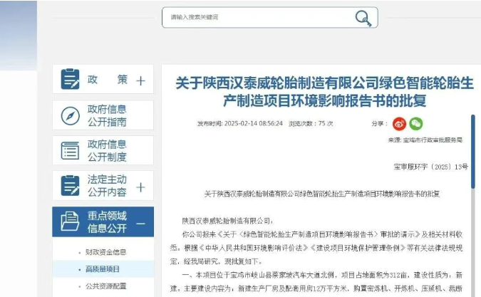 【炭黑產(chǎn)業(yè)網(wǎng)】6月27日消息,陜西岐山縣正迎來一個(gè)極具發(fā)展?jié)摿Φ漠a(chǎn)業(yè)項(xiàng)目——綠色智能全鋼子午線輪胎制造項(xiàng)目。該項(xiàng)目由陜西漢泰威輪胎制造有限公司傾力打造,選址于蔡家坡渭河以南區(qū)域,規(guī)劃占地面積為314畝,總投資額高達(dá)10億元,目前正按計(jì)劃有序推進(jìn)建設(shè)。
