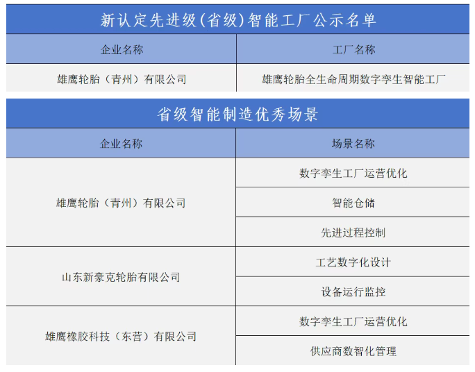 雄鷹輪胎集團(tuán)榮膺多項(xiàng)省級智能制造殊榮