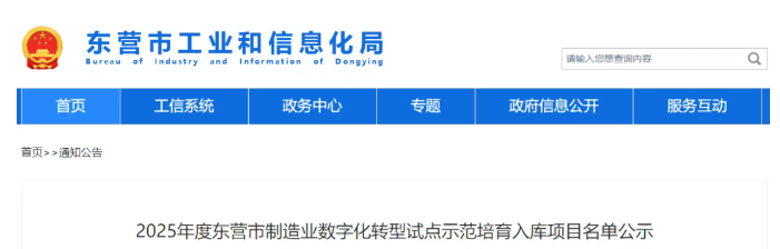 7 月 1 日,東營市工業(yè)和信息化局公示 2025 年度山東省東營市制造業(yè)數(shù)字化轉(zhuǎn)型試點(diǎn)示范培育入庫項(xiàng)目名單,公示期自 7 月 1 日持續(xù)至 7 月 7 日。該名單覆蓋智能工廠、數(shù)字化車間、內(nèi)網(wǎng)改造標(biāo)桿企業(yè)、企業(yè)上云標(biāo)桿等多元類別。