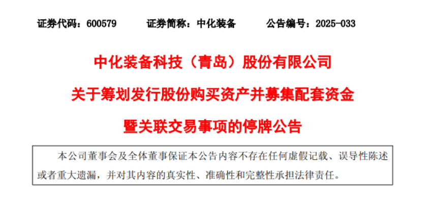 【炭黑產(chǎn)業(yè)網(wǎng)】7 月 15 日消息,中化裝備科技(青島)股份有限公司于 7 月 14 日發(fā)布公告,宣布公司股票自 7 月 15 日起進入停牌階段。根據(jù)公告內(nèi)容,此次停牌預(yù)計時長不超過 10 個交易日,主要因公司正推進發(fā)行股份收購資產(chǎn)及配套融資等重要事項。