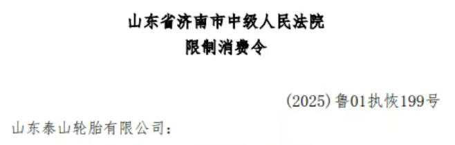 【炭黑產(chǎn)業(yè)網(wǎng)】7 月 30 日消息,2025 年 7 月 29 日,山東省濟南市中級人民法院發(fā)布限制消費令,山東泰山輪胎有限公司因未按期履行高達數(shù)千萬元的給付義務(wù),其法定代表人武朋被依法采取限制高消費措施。這一事件讓一起起始于 2014 年的金融借款合同糾紛再度走入大眾視野,給本就處于壓力之下的輪胎行業(yè)帶來了更多憂慮。