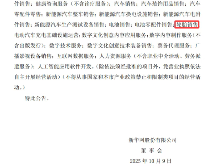 【炭黑產(chǎn)業(yè)網(wǎng)】10月11日消息,10月10日,新華網(wǎng)股份有限公司對外發(fā)布公告稱,公司已順利完成變更注冊資本、取消監(jiān)事會等事項的工商變更登記手續(xù),并成功領取了新的《營業(yè)執(zhí)照》。此次工商變更后,公司的經(jīng)營范圍較此前有所擴大,其中新增了輪胎銷售業(yè)務。