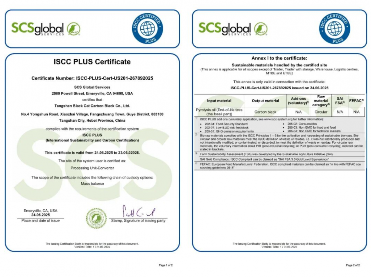 【炭黑產(chǎn)業(yè)網(wǎng)】11月4日消息,江西黑貓?zhí)亢诠煞萦邢薰荆ㄏ路Q“黑貓股份”)近期在可持續(xù)發(fā)展領(lǐng)域傳來重磅喜訊。其旗下子公司唐山黑貓?zhí)亢谟邢挢?zé)任公司(下稱“唐山黑貓”)率先取得國際可持續(xù)發(fā)展與碳認(rèn)證(ISCC PLUS),緊隨其后,黑貓股份總部也成功通過該項(xiàng)認(rèn)證。