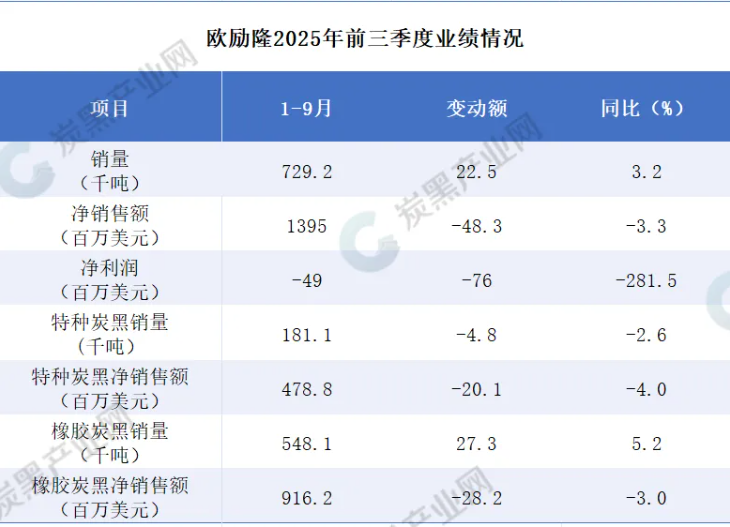 日前,全球炭黑行業(yè)巨頭歐勵(lì)隆發(fā)布2025年第三季度及前三季度財(cái)務(wù)報(bào)告,顯示受全球輪胎市場低價(jià)競爭、油價(jià)下跌及客戶結(jié)構(gòu)調(diào)整等因素影響,公司營收與利潤雙雙承壓。