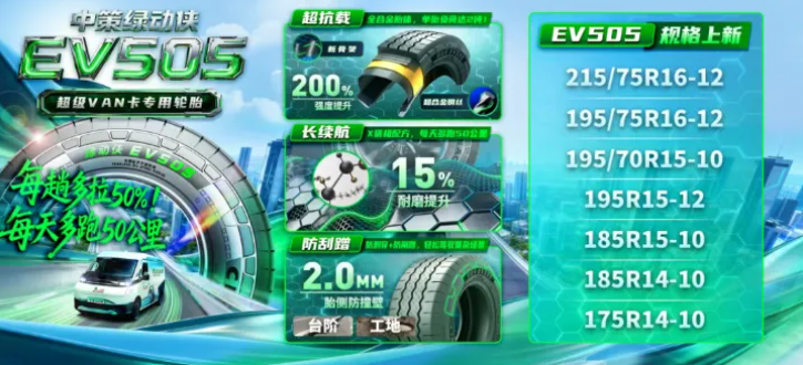 1月5日,繼超級VAN卡專用輪胎EV505全球首條上市后,中策橡膠正式面向“VAN卡”車主推出全規(guī)格系列新品,依托全球三大首創(chuàng)核心技術(shù),引領(lǐng)新能源城配物流輪胎市場變革。