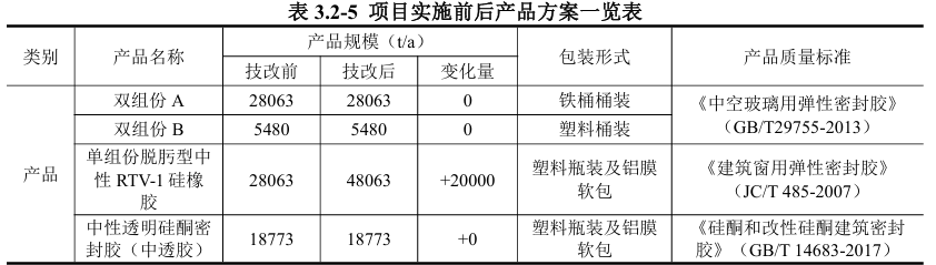 項目總投資1億元。本次竣工環(huán)境保護驗收產(chǎn)品主要為單組份脫肟型中性RTV-1硅橡膠,其產(chǎn)量為20000t/a常用于各種密封、填縫、粘接的應用,主要用于建筑密封、汽車制造、電子產(chǎn)排、工業(yè)生產(chǎn)等方面。