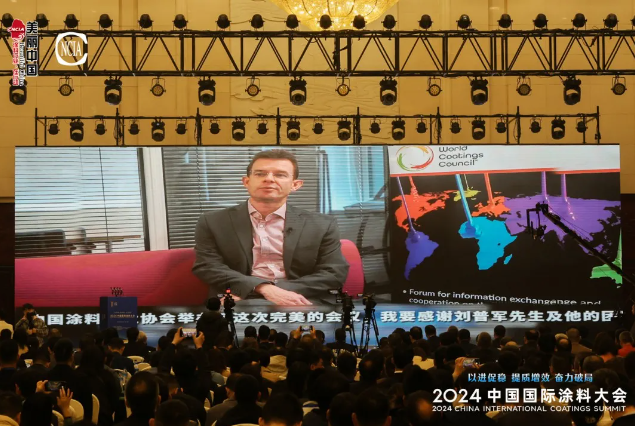 此次大會盡顯國際化、全球化。世界涂料理事會(WCC)會長Tom Bowtell為大會發(fā)來視頻致辭,他表示,涂料制造商受全球趨勢的影響,當(dāng)前一些積極的進展讓我們對2024年全球涂料市場持樂觀態(tài)度。中國仍然是世界上最大且最活躍的涂料市場,劉普軍先生領(lǐng)導(dǎo)下的中國涂料工業(yè)協(xié)會是世界涂料理事會的活躍成員,他代表世界涂料理事會感謝中國涂料工業(yè)協(xié)會為世界涂料理事會所做的貢獻,并預(yù)祝2024中國國際涂料大會取得圓滿成功。大會邀請了印度尼西亞涂料協(xié)會會長Kris Adidarma、知名經(jīng)濟學(xué)家對外經(jīng)濟貿(mào)易大學(xué)教授Fred Engst(陽和平)、贏創(chuàng)涂料添加劑業(yè)務(wù)線副總裁兼全球工業(yè)和交通涂料市場負責(zé)人Shaeffner Benjamin(施杰明)、湛新樹脂亞太區(qū)市場總監(jiān)Taweesak Kaosol、??瓦~斯亞太區(qū)首席運營官Tim Nash為與會代表帶來了印尼涂料發(fā)展、中美經(jīng)濟形勢分析以及國際知名企業(yè)的前沿技術(shù)和創(chuàng)新產(chǎn)品助力涂料行業(yè)綠色低碳可持續(xù)發(fā)展。