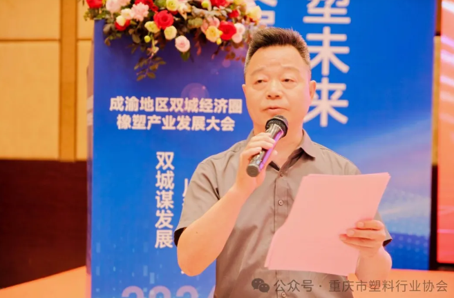 重慶市塑料行業(yè)協(xié)會會長陳杰在會上致歡迎詞,他首先對今天參會的領(lǐng)導(dǎo)和嘉賓及行業(yè)同仁表示熱烈的歡迎和衷心的感謝,此次大會的召開,正是為了匯聚行業(yè)精英,共同探討橡塑產(chǎn)業(yè)的發(fā)展趨勢,分享創(chuàng)新經(jīng)驗,推動成渝地區(qū)雙城經(jīng)濟圈橡塑產(chǎn)業(yè)的協(xié)同發(fā)展。他表示:“成渝地區(qū)雙城經(jīng)濟圈作為國家重大區(qū)域發(fā)展戰(zhàn)略,其重要性和戰(zhàn)略地位尤為突出。而橡塑產(chǎn)業(yè)作為支撐地區(qū)經(jīng)濟發(fā)展的重要力量,更是承載著推動區(qū)域產(chǎn)業(yè)協(xié)同發(fā)展的重要使命。”在致辭中展望了成渝地區(qū)橡塑產(chǎn)業(yè)的廣闊發(fā)展前景。