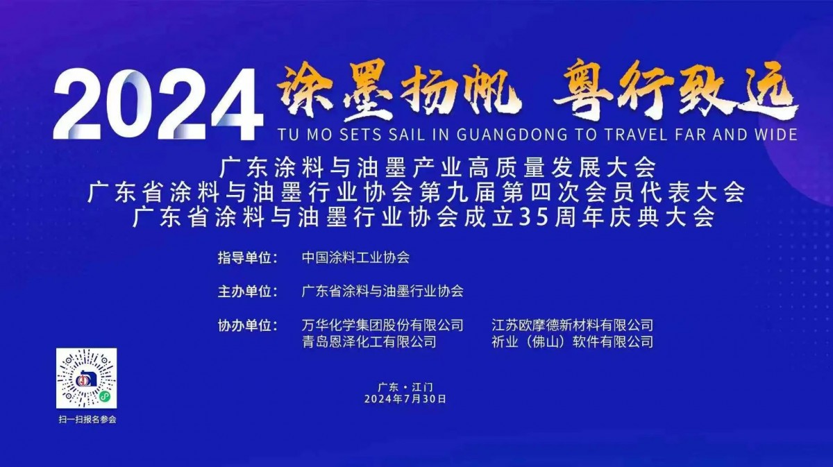7月29日,由廣東省涂料與油墨行業(yè)協(xié)會主辦的2024廣東涂料與油墨產(chǎn)業(yè)高質(zhì)量發(fā)展大會即將在江門召開。