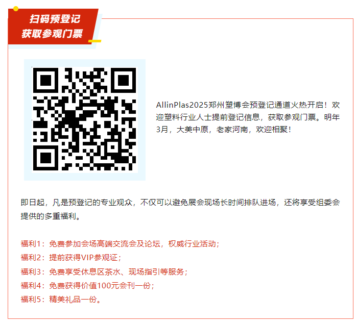 預(yù)登記 | AllinPlas2025鄭州塑博會參觀門票正式開領(lǐng)!更有豐富好禮等你領(lǐng)!
