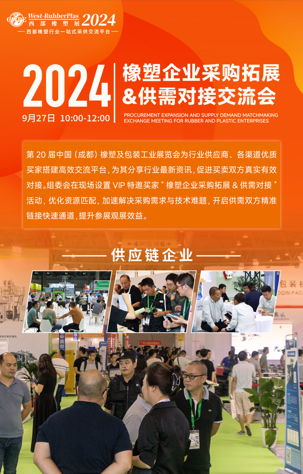 9月27日,2024成都橡塑及包裝工業(yè)展開幕,同期組委會(huì)聚焦西部地區(qū)橡塑市場(chǎng)供需熱點(diǎn),舉辦了橡塑企業(yè)采購(gòu)?fù)卣?amp;供需對(duì)接交流會(huì),立足行業(yè)前沿,橫跨產(chǎn)業(yè)上下游,打造一個(gè)聚焦橡塑制品與供應(yīng)鏈一體化的盛會(huì),實(shí)現(xiàn)供需雙方的無(wú)縫對(duì)接,促進(jìn)上下游企業(yè)的精準(zhǔn)匹配,塑造高質(zhì)量發(fā)展新引擎。