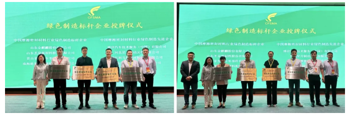 理事會/常務理事會(擴大會議)期間舉行了綠色制造標桿企業(yè)和綠色制造先進企業(yè)授牌儀式,協(xié)會輪值會長、煙臺石川密封科技股份有限公司副總經(jīng)理王平宣讀了協(xié)會《關(guān)于授予中國摩擦密封材料行業(yè)綠色制造標桿企業(yè)與綠色制造先進企業(yè)稱號的決定》。經(jīng)會員單位自愿申報、協(xié)會綠色低碳工作小組進行審定、協(xié)會官方媒體公示、公告,經(jīng)研究決定授予山東金麒麟股份有限公司、山東圣泉新材料股份有限公司、黃山菲英汽車零部件有限公司、珠海格萊利摩擦材料股份有限公司“中國摩擦密封材料行業(yè)綠色制造標桿企業(yè)”稱號,授予博世汽車技術(shù)服務(中國)有限公司、河北星月制動元件有限公司、浙江科馬摩擦材料股份有限公司、山東萊蕪潤達新材料有限公司“中國摩擦密封材料行業(yè)綠色制造先進企業(yè)”稱號。