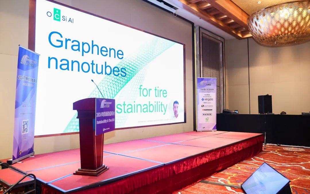 Jean-Nicolas Helt,OCSiAl Group彈性體開發(fā)與支持負責人,展示了石墨烯納米管在輪胎配方設(shè)計中的應用,強調(diào)這種材料如何在不犧牲其他性能的前提下,顯著減少滾動阻力和碳足跡,并介紹了石墨烯納米管如何幫助提高輪胎的電導性和耐用性。