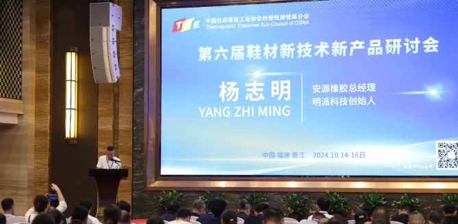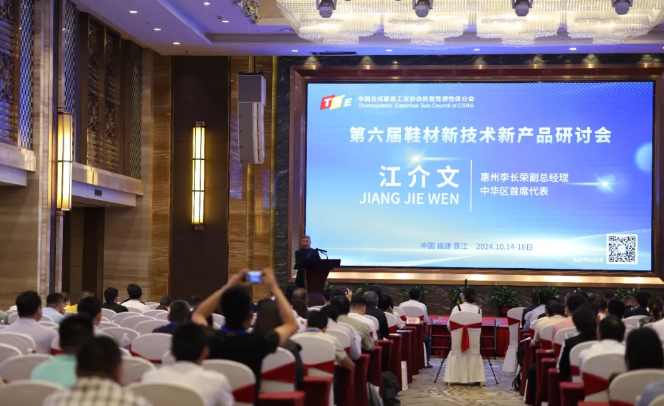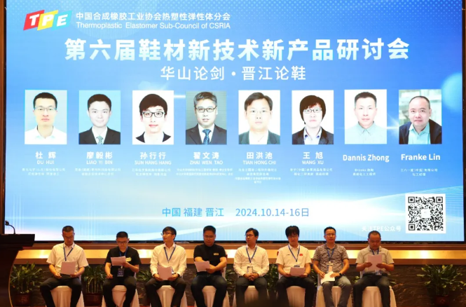 2024年10月15日上午,中國(guó)合成橡膠工業(yè)協(xié)會(huì)熱塑性彈性體分會(huì)(以下簡(jiǎn)稱TPE分會(huì))舉辦的《第六屆鞋材新技術(shù)新產(chǎn)品研討會(huì)》在福建晉江愛樂國(guó)際酒店隆重召開,來自鞋產(chǎn)業(yè)鏈相關(guān)的上下游品牌企業(yè)、鞋底廠、鞋材廠以及鞋原輔材料、添加劑、設(shè)備、軟件企業(yè)、檢測(cè)機(jī)構(gòu)、高等院??蒲性核绕髽I(yè)負(fù)責(zé)人、技術(shù)研發(fā)生產(chǎn)及營(yíng)銷骨干、專家學(xué)者等近300人參加會(huì)議。