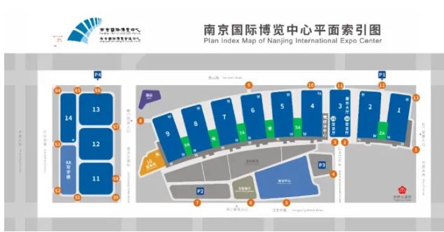 導航至南京國際博覽中心7號門-P2停車場,步行至東門登錄大廳入口。