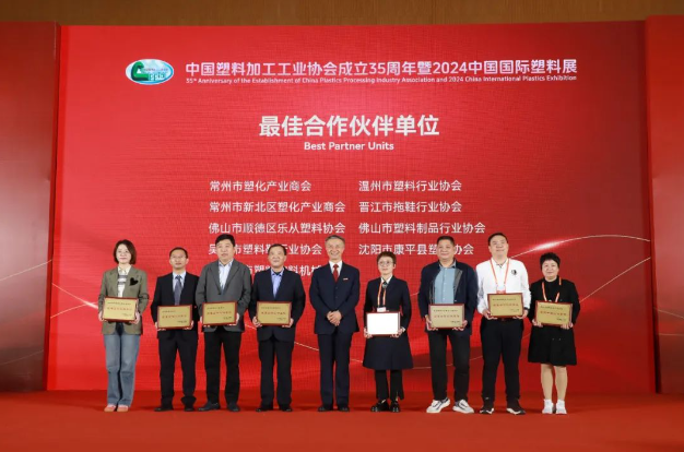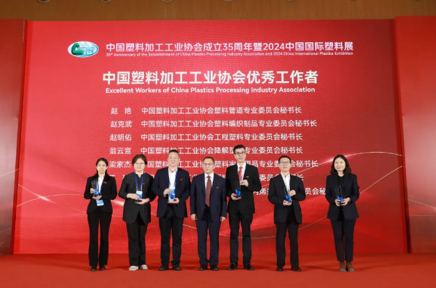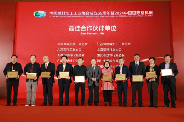 三十五載,感恩同行。慶祝晚宴上,與會(huì)領(lǐng)導(dǎo)為三十五年來,對(duì)中國(guó)塑料加工行業(yè)發(fā)展做出突出貢獻(xiàn)、對(duì)中國(guó)塑協(xié)工作給予支持的先進(jìn)單位、先進(jìn)個(gè)人進(jìn)行表揚(yáng)。