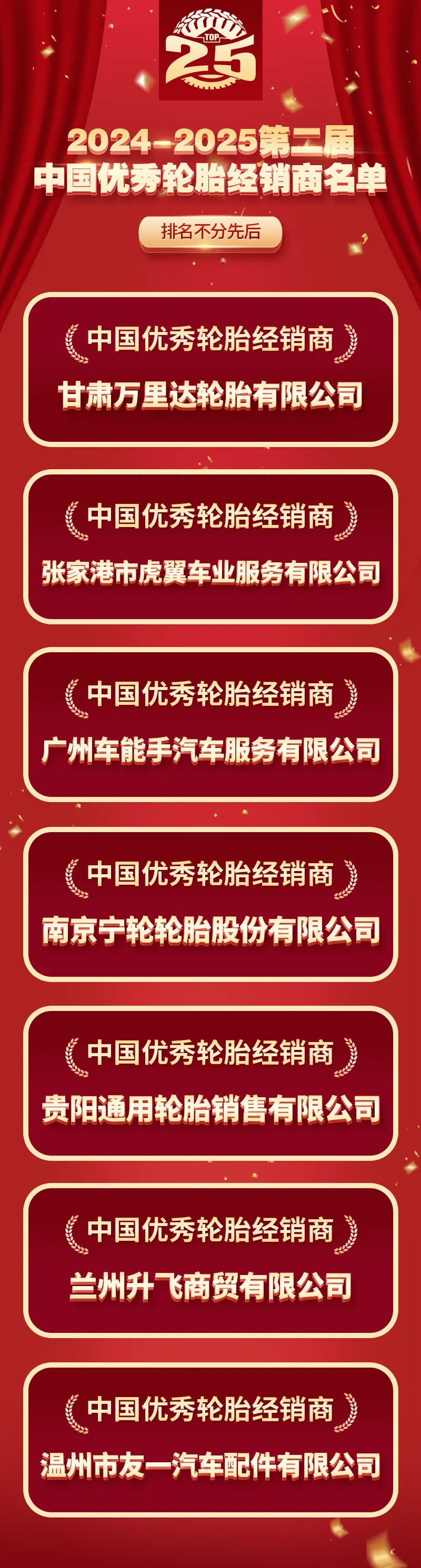 第二屆“中國輪胎經(jīng)銷商TOP25”企業(yè)