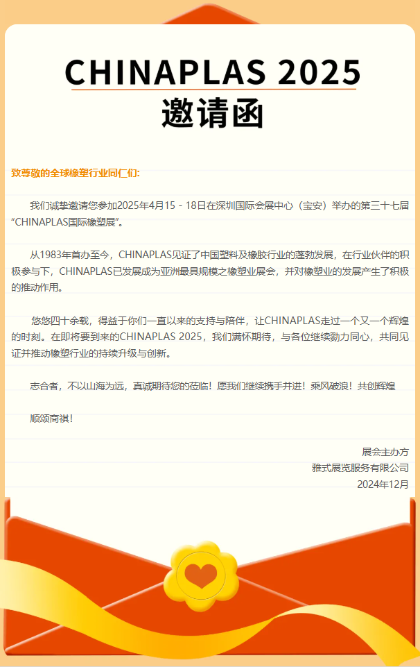 叮咚!您有一封2025國(guó)際橡塑展的參觀邀請(qǐng)函,請(qǐng)查收!