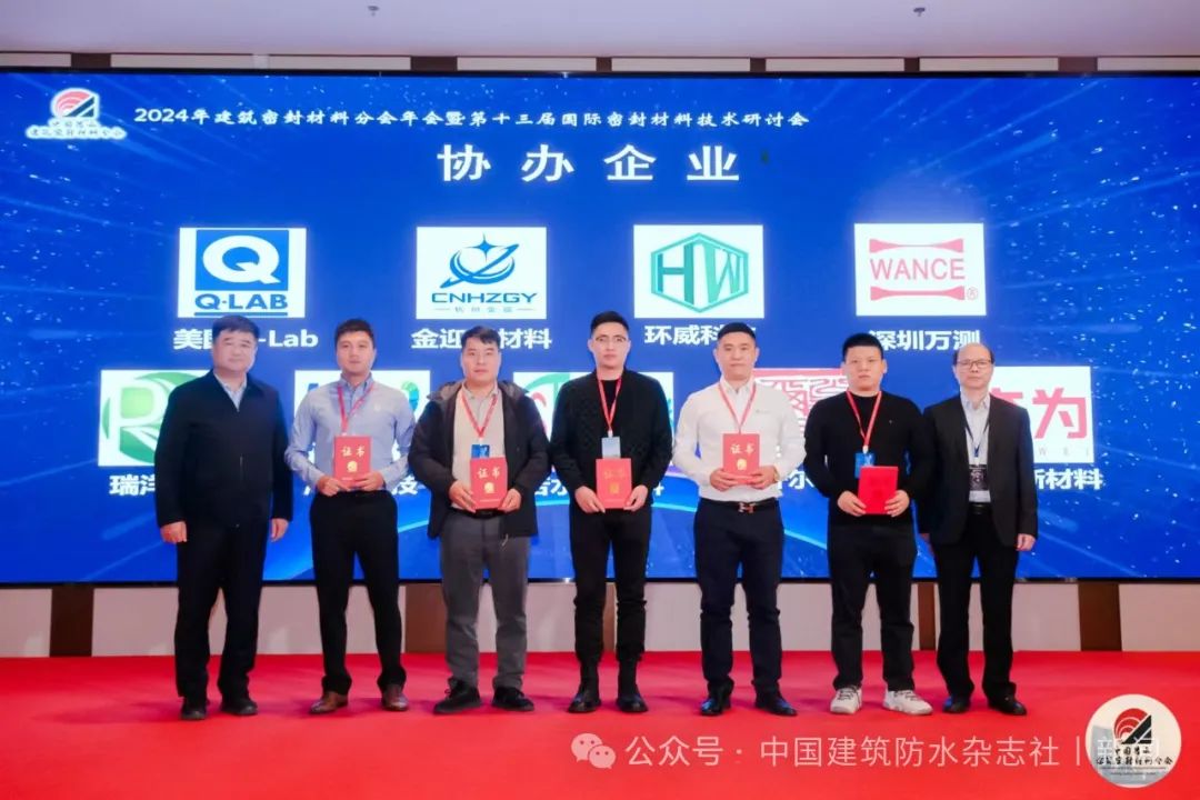 會上對積極協(xié)辦2024年建筑密封材料分會年會的美國Q-Lab公司、杭州金迎新材料有限責任公司、無錫環(huán)威科技有限公司、深圳萬測試驗設備有限公司、江蘇瑞洋安泰新材料科技有限公司、江西海皓科技有限公司、江西若水新材料科技有限公司、翁開爾(上海)國際貿(mào)易有限公司、深圳市奮為新材料有限公司等企業(yè),以及為年會論文集撰稿的個人頒發(fā)了證書。國檢集團蘇州公司高級專務朱德明宣讀表彰決定。