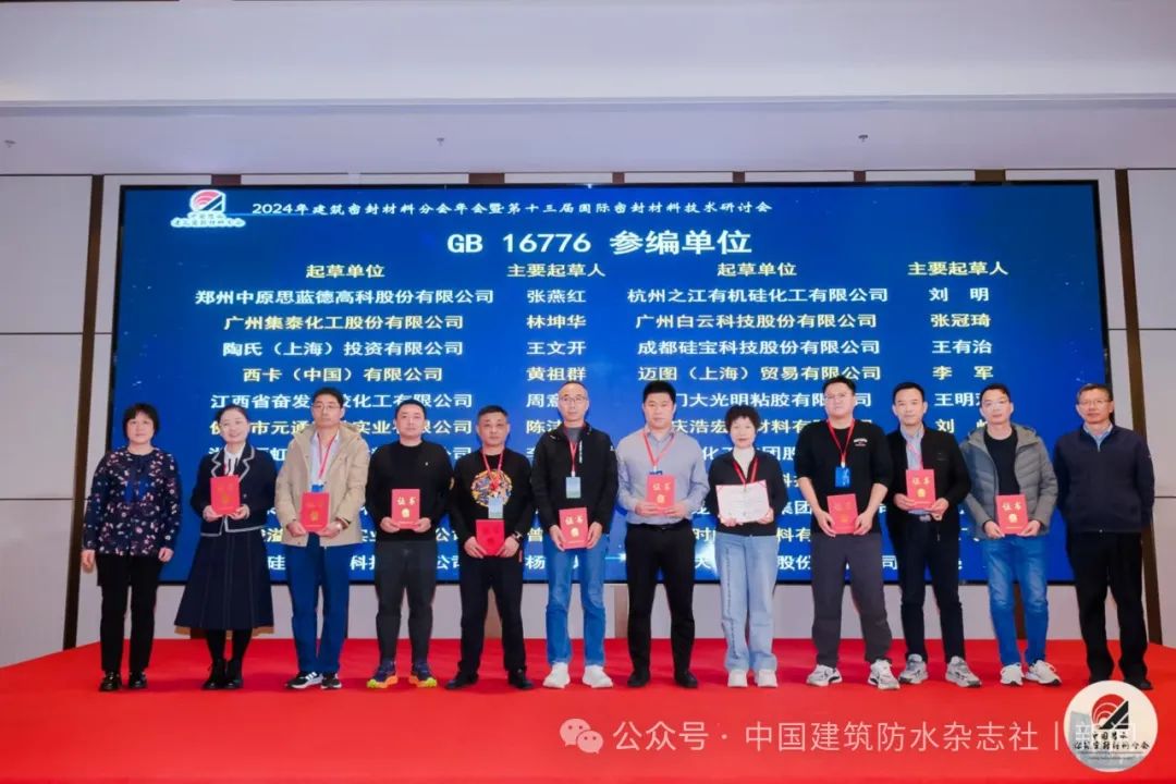 最后,主辦方對參與GB 16776《建筑用硅酮結(jié)構(gòu)密封膠》標準編制的單位和個人頒發(fā)了證書,以表彰他們在行業(yè)標準化工作中的貢獻。