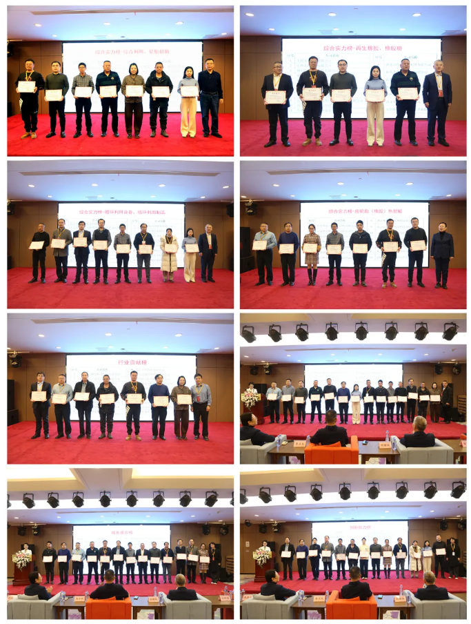 隨后,《中國輪胎資源綜合利用》雜志社舉辦了2024年度中國輪胎循環(huán)利用行業(yè)排行榜榜單發(fā)布及頒獎(jiǎng)儀式。本次行業(yè)排行榜發(fā)布的榜單有中國輪胎循環(huán)利用行業(yè)“綜合實(shí)力排行榜”、“行業(yè)貢獻(xiàn)排行榜”、“綠色先鋒排行榜”、“創(chuàng)新能力排行榜”、“成長進(jìn)步排行榜”,其中“綜合實(shí)力排行榜”細(xì)分為“綜合實(shí)力榜-綜合利用”、“綜合實(shí)力榜-輪胎翻新”、“綜合實(shí)力榜-橡膠粉”、“綜合實(shí)力榜-制品”、“綜合實(shí)力榜-再生橡膠”、“綜合實(shí)力榜-廢輪胎(橡膠)熱裂解”和“綜合實(shí)力榜-設(shè)備”七個(gè)領(lǐng)域。