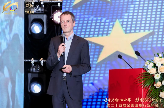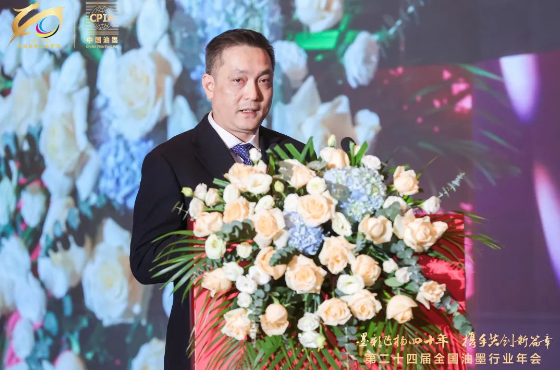 中國(guó)日用化工協(xié)會(huì)副理事長(zhǎng)、杭華油墨股份有限公司黨委書(shū)記、董事長(zhǎng)兼總經(jīng)理邱克家先生做了主題演講《四秩匠心 弦歌不輟——中國(guó)油墨工業(yè)四十年》的奮斗歷程,回顧了行業(yè)從技術(shù)引進(jìn)到自主創(chuàng)新的崢嶸歷程。他指出,油墨應(yīng)用領(lǐng)域的大跨步發(fā)展和印刷增量推動(dòng)了行業(yè)的蓬勃成長(zhǎng),但行業(yè)仍面臨“出?!彪y題、膠印油墨綠色轉(zhuǎn)型、水性油墨落地、溶劑回收再利用等挑戰(zhàn)。邱克家強(qiáng)調(diào),未來(lái)行業(yè)需堅(jiān)守匠心精神,以創(chuàng)新驅(qū)動(dòng)綠色化、數(shù)字化、國(guó)際化發(fā)展,攻克技術(shù)難題,拓展國(guó)際市場(chǎng)。他祝愿全體油墨人前程似錦,攜手共創(chuàng)行業(yè)輝煌未來(lái)!