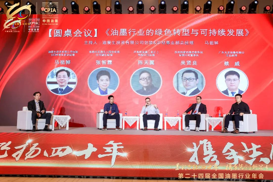 在圓桌會(huì)議環(huán)節(jié),以“油墨行業(yè)的綠色轉(zhuǎn)型與可持續(xù)發(fā)展”為主題,由迪愛(ài)生投資有限公司包裝&印材事業(yè)部總經(jīng)理馬祖驊主持,蘇州科斯伍德色彩科技有限公司董事長(zhǎng)吳賢良、洋紫荊油墨(浙江)有限公司總裁陳天翼、珠海市樂(lè)通化工股份有限公司副總經(jīng)理張智霖、廣東天龍油墨有限公司總經(jīng)理蔡威等嘉賓共同探討了行業(yè)綠色轉(zhuǎn)型的路徑與挑戰(zhàn)。