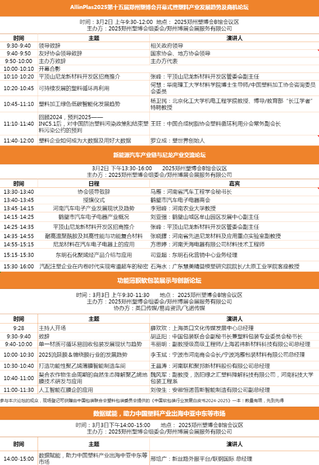 3月3日,兩場重磅論壇——“功能薄膜軟包裝展示與創(chuàng)新論壇”和“數(shù)據(jù)賦能,助力中國塑料產(chǎn)業(yè)出海中亞中東等市場”相繼拉開帷幕。行業(yè)翹楚、企業(yè)領(lǐng)袖齊聚一堂,圍繞產(chǎn)業(yè)前沿趨勢(shì)和熱點(diǎn)話題展開巔峰對(duì)話,分享真知灼見,共繪行業(yè)發(fā)展藍(lán)圖?,F(xiàn)場思想碰撞,智慧交融,掌聲雷動(dòng),氣氛高漲,為行業(yè)發(fā)展注入強(qiáng)勁動(dòng)力。