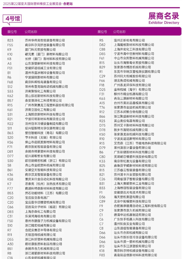 倒計時7天!2025亞太橡塑展?合肥站:展商名錄大公開,塑料橡膠盛宴即將開啟!