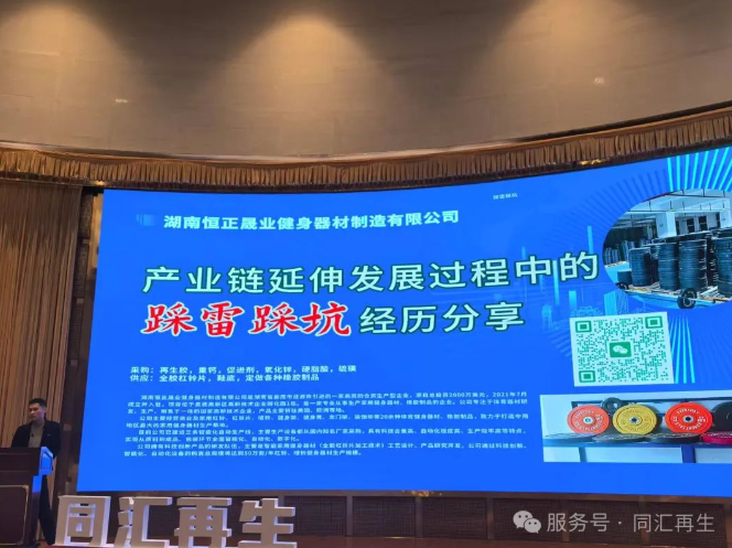湖南恒正晟業(yè)健身器材有限公司總經(jīng)理申帥作《產(chǎn)業(yè)鏈延伸發(fā)展過程中的踩雷踩坑經(jīng)驗分享》的主題報告。從最初的簡單分解到膠粉、再生膠,再到熱裂解,以及后期制品產(chǎn)業(yè)的發(fā)展經(jīng)歷中,詳細分享了自己在產(chǎn)業(yè)鏈內(nèi)的踩坑經(jīng)歷,對行業(yè)內(nèi)的廠家有很強的借鑒意義。