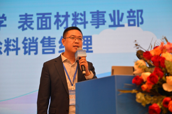萬華化學(xué)表面材料事業(yè)部涂料銷售經(jīng)理李騰飛,分享了萬華化學(xué)在生物基、凈味、水性等環(huán)保涂料的應(yīng)用解決方案。