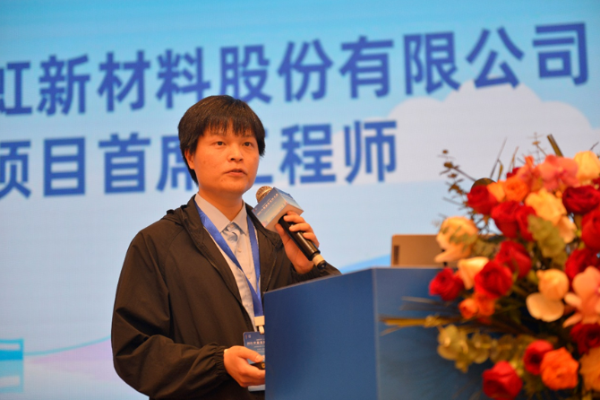 浙江豐虹新材料股份有限公司項(xiàng)目首席工程師孫洪,分享了綠色環(huán)??咕栏瘎┊a(chǎn)品和相關(guān)的成功案例。