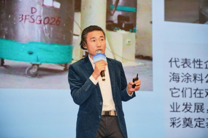 浙江魚童新材料股份有限公司總經(jīng)理曾超,分享了節(jié)能型防污涂料的開發(fā)和民族船舶涂料的高質(zhì)量發(fā)展之路。