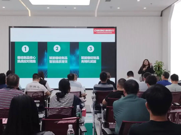 會議伊始,東莞市合成橡膠行業(yè)協(xié)會秘書長、東莞市硅眾新材料有限公司總經(jīng)理曾劍霞為會議致歡迎辭。秘書長對各位參會代表的到來表示熱烈,并對大家長期以來對協(xié)會工作的支持表示衷心感謝。