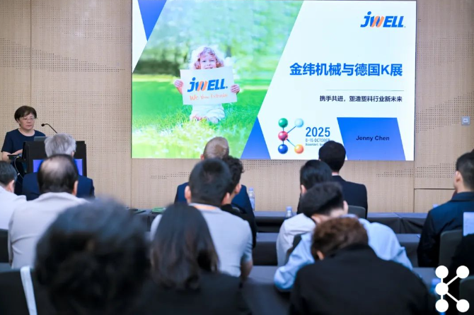 最后,作為本次中國展商的代表,常州金緯擠出公司與常州化工智能公司董事陳女士生動分享了金緯與德國K展攜手同行的全球化故事。談及金緯的發(fā)展歷程,陳女士感慨萬千,她表示,正是借助K展這一平臺,金緯不斷茁壯成長,如今已擁有30多家控股的專業(yè)公司,員工數(shù)量超過3,000人。