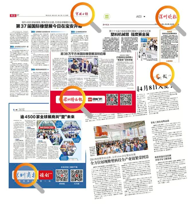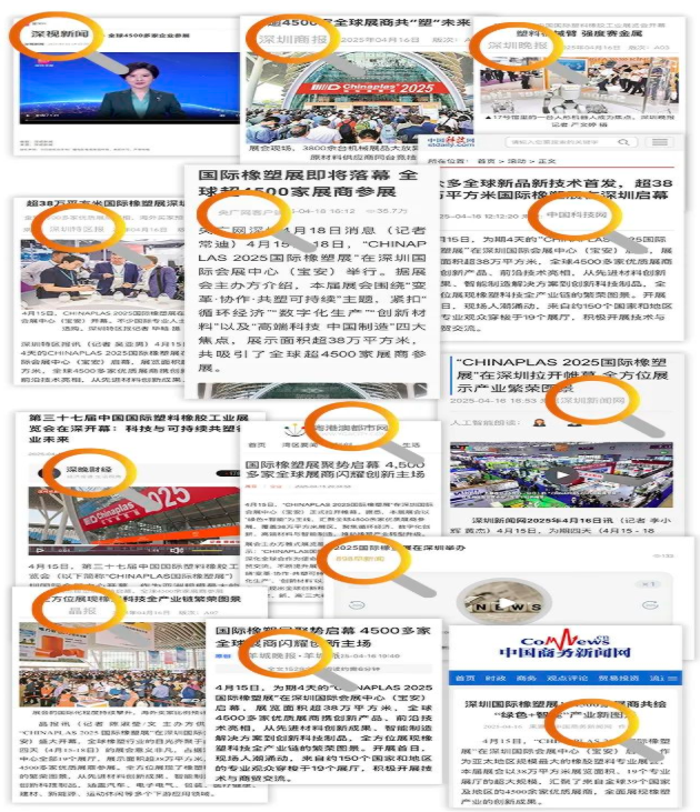 ▲感謝新華網(wǎng)、央廣網(wǎng)、中國科技網(wǎng)、深圳特區(qū)報、深圳商報、深視新聞、羊城晚報、深圳晚報、晶報、寶安日報、粵港澳都市報、中國商務新聞網(wǎng)、深圳新聞網(wǎng)、898早新聞等多家媒體,對CHINAPLAS的大力報道。(排名不分先后)
