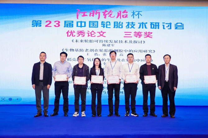 經(jīng)與會(huì)代表投票和專(zhuān)家評(píng)審委員會(huì)審議,大會(huì)評(píng)選出10篇優(yōu)秀論文。貴州輪胎股份有限公司高曉松的《基于科學(xué)碳目標(biāo)倡議(SBTi)標(biāo)準(zhǔn)下的輪胎行業(yè)低碳可持續(xù)發(fā)展初步實(shí)踐》榮獲優(yōu)秀論文一等獎(jiǎng)并獲“江昕輪胎杯”,江蘇江昕科技股份有限公司王明江等的《基于纖維取向調(diào)控的橡膠隱形骨架材料設(shè)計(jì)與免充氣空心輪胎仿生結(jié)構(gòu)研究》等3篇論文榮獲優(yōu)秀論文二等獎(jiǎng),山東華盛橡膠有限公司陳建軍等的《未來(lái)輪胎可持續(xù)發(fā)展技術(shù)及探討》等6篇論文榮獲優(yōu)秀論文三等獎(jiǎng)。