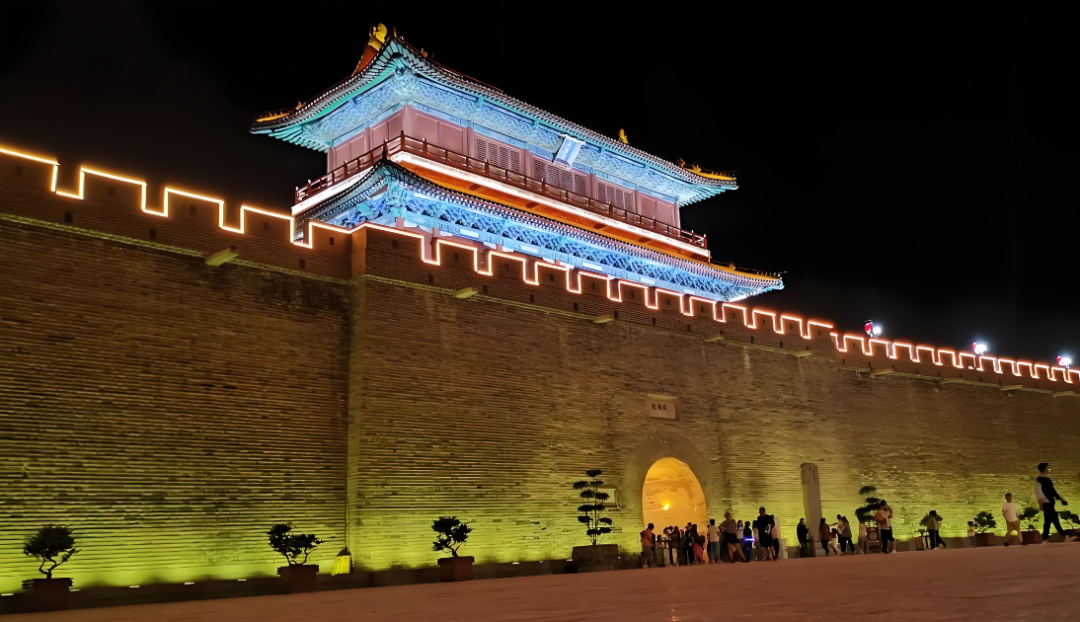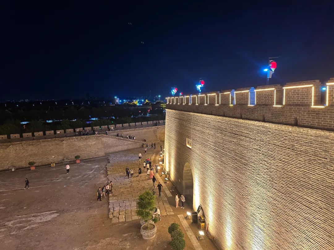 吃過晚飯后,登上正定古城墻,可以騎自行車,也可以隨意走走。