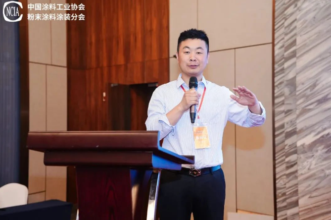 在隨后的演講中,安徽美佳新材料股份有限公司副總經(jīng)理陳榮山探討了“粉末涂料在工程機(jī)械上的使用難點和應(yīng)用探討”。針對復(fù)雜工件噴涂不均、厚涂層流掛、大型件固化難等痛點,提出自動化噴涂(機(jī)器人+旋轉(zhuǎn)噴頭)、低溫固化樹脂(120-140℃)、多層涂裝工藝及納米填料技術(shù),有效提升邊角覆蓋與耐候性。針對特殊應(yīng)用場景采用碳化鎢增強(qiáng)型粉末耐磨性提升3倍。陳總表示,未來要通過材料創(chuàng)新、工藝優(yōu)化及全產(chǎn)業(yè)鏈共同協(xié)同,才能夠讓粉末涂料在工程機(jī)械行業(yè)達(dá)到應(yīng)用推廣。