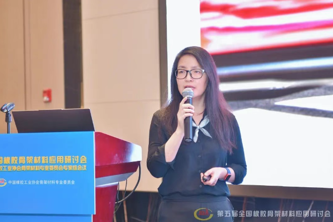 三角輪胎股份有限公司材料研發(fā)主任劉恩冉,分析了可持續(xù)骨架材料在輪胎中的應(yīng)用情況,強(qiáng)調(diào)其對推動輪胎行業(yè)綠色發(fā)展、降低環(huán)境影響的重要作用。
