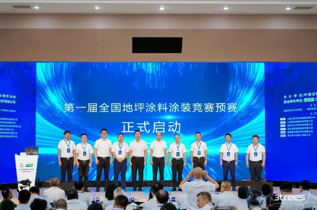 三棵樹涂料股份有限公司董事長洪杰、中國涂料工業(yè)協(xié)會秘書長劉杰、中國涂料工業(yè)協(xié)會地坪分會理事長崔景燾、福建省涂料工業(yè)協(xié)會會長施義民、福建省地坪行業(yè)協(xié)會會長葉根翼、上海市長寧區(qū)整體地坪智能環(huán)保產業(yè)促進會會長章濤、安徽省地坪行業(yè)協(xié)會會長王龍、陜西省土木建筑學會地坪工程技術專業(yè)委員會會長潘玉東、四川省地坪工程技術協(xié)會會長王佳、湖北省地坪行業(yè)協(xié)會榮譽會長陳佰安,共同開啟以“技術比拼、人才孵化”為宗旨的第一屆全國地坪涂料涂裝競賽預賽啟動儀式。