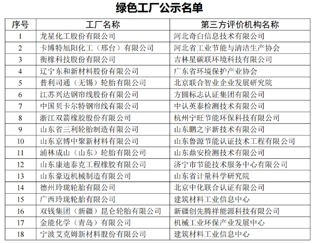 在這份名單中,多家橡膠和輪胎相關(guān)企業(yè)入選為綠色工廠。