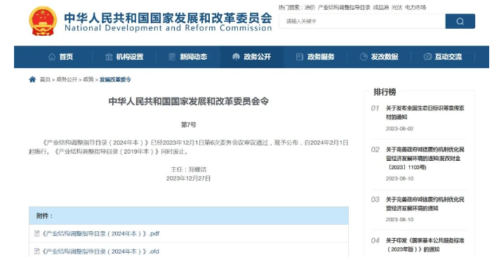 【炭黑產(chǎn)業(yè)網(wǎng)】1月9日消息,國家發(fā)展改革委近日修訂并發(fā)布了《產(chǎn)業(yè)結(jié)構(gòu)調(diào)整指導(dǎo)目錄(2024年本)》,該指導(dǎo)目錄將于2024年2月1日正式實施,同時廢止2019年版本。此次修訂經(jīng)過2023年12月1日第6次委務(wù)會議的審議通過,被視為國家推動產(chǎn)業(yè)結(jié)構(gòu)調(diào)整和優(yōu)化升級的重要舉措。