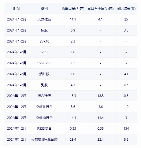 2024年前兩個(gè)月,越南的天然橡膠和混合橡膠出口總量達(dá)到了29.4萬(wàn)噸,較去年同期增長(zhǎng)了8.5%。對(duì)中國(guó)的出口總量也呈現(xiàn)出積極的增長(zhǎng)趨勢(shì),達(dá)到了22.4萬(wàn)噸,同比增長(zhǎng)8.7%。這一系列數(shù)據(jù)充分表明,越南在全球橡膠市場(chǎng)上的地位正在穩(wěn)步提升,其出口結(jié)構(gòu)也在不斷優(yōu)化中。